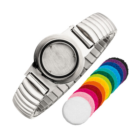 Joustava Magneettiranneke 20 mm on valmistettu korkealaatuisesta jaloteräksestä, johon on takapuolelle upotettu neodymimagneetteja. Sen avulla voit kantaa lempituoksuasi tai aromaöljyäsi aina mukanasi ja nauttia. Joustavuutensa ansiosta se on helppo sujauttaa ranteeseen ja se sopii aina.