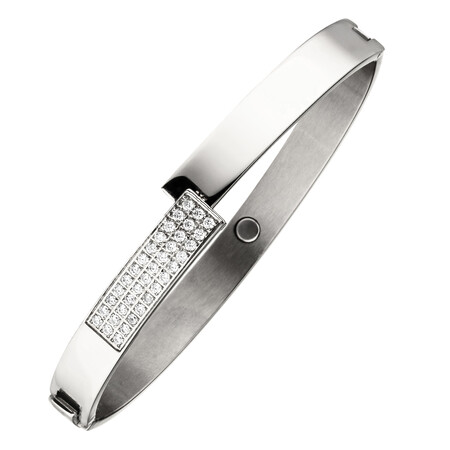 Den magnetarmbandet i högpolerat rostfritt stål har en okomplicerad förslutning, vilket gör det enkelt att sätta på och stänga säkert. Inuti är en neodymmagnet diskret integrerad. De mousserande zirkonia lockar blickar nästan magiskt.