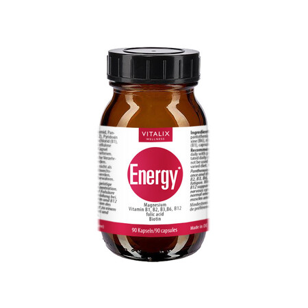 Kosttillskott med magnesium, vitaminer B 1, B 2, B3, B6, B12, folsyra och biotin.